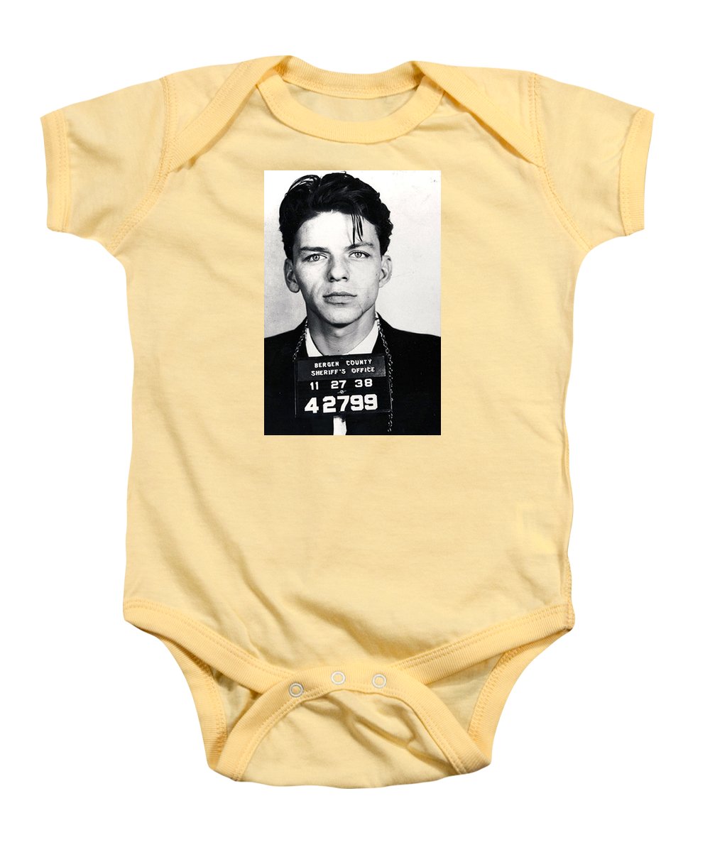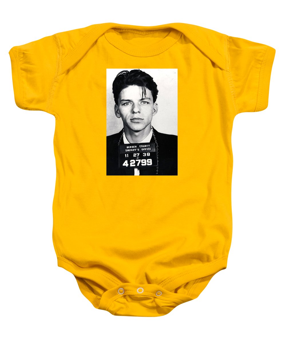 • Frank Sinatra Mug Shot Vertical - Baby Onesie Baby Onesie Pixels Gold Small