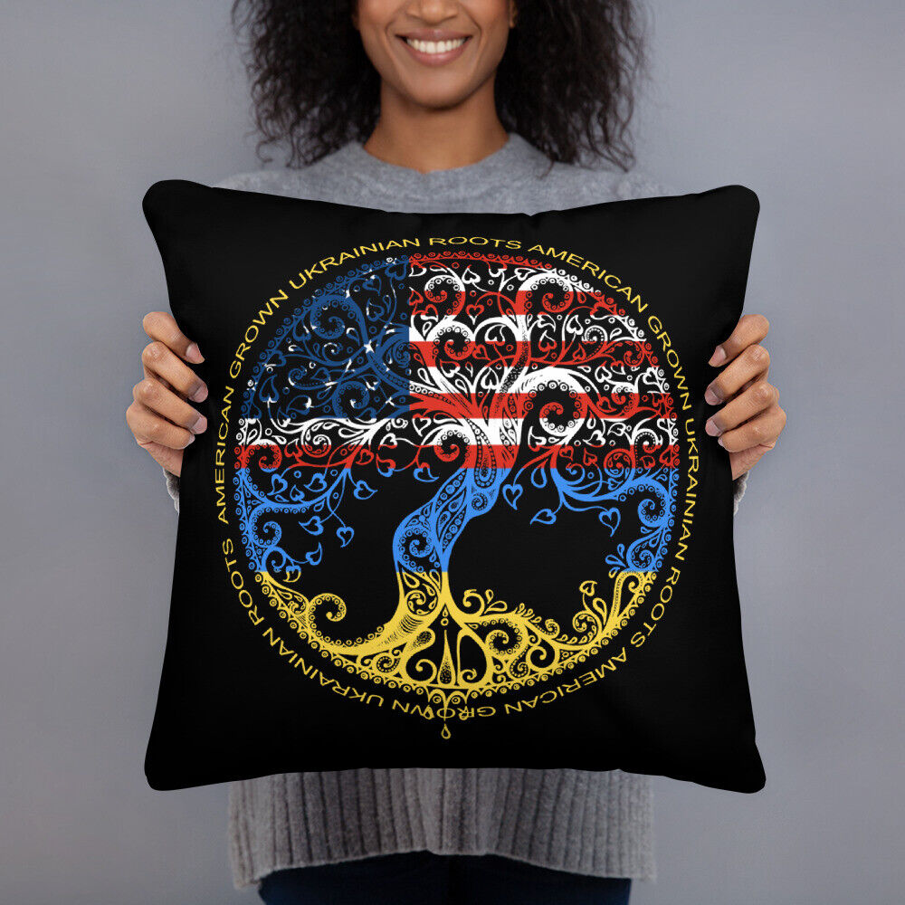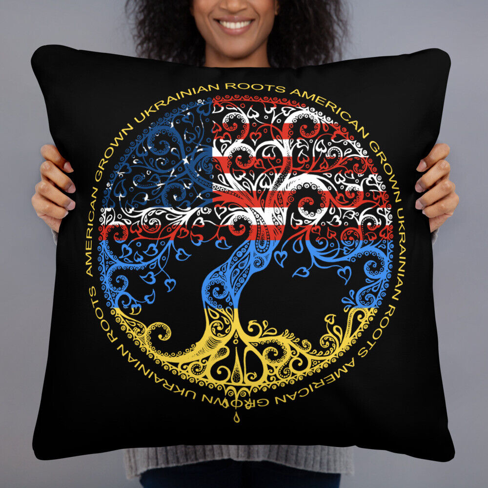 • American Grown Ukrainian Roots Ukraine Flag 2 Basic Pillow