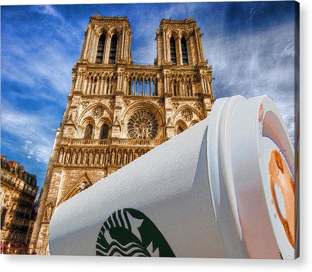 • Discarded Coffee Cup Trash Oh Yeah - And Notre Dame - Acrylic Print