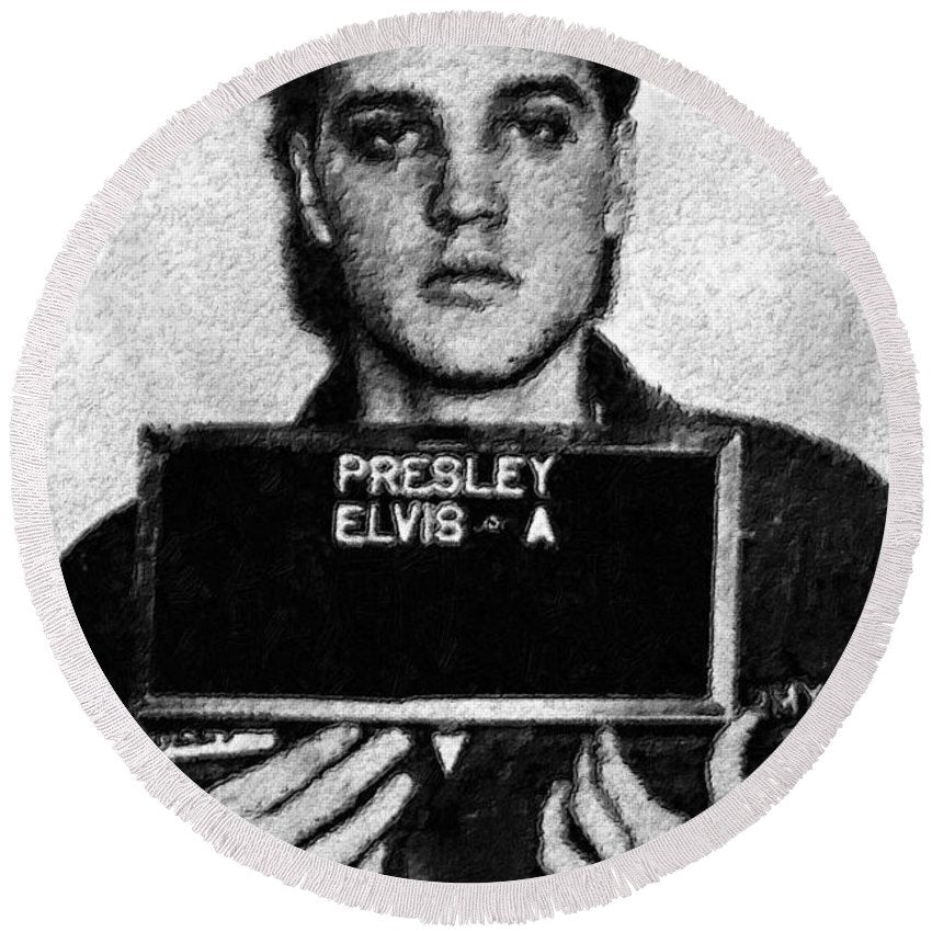 Elvis Presley Mug Shot Acrylic - Round Beach Towel