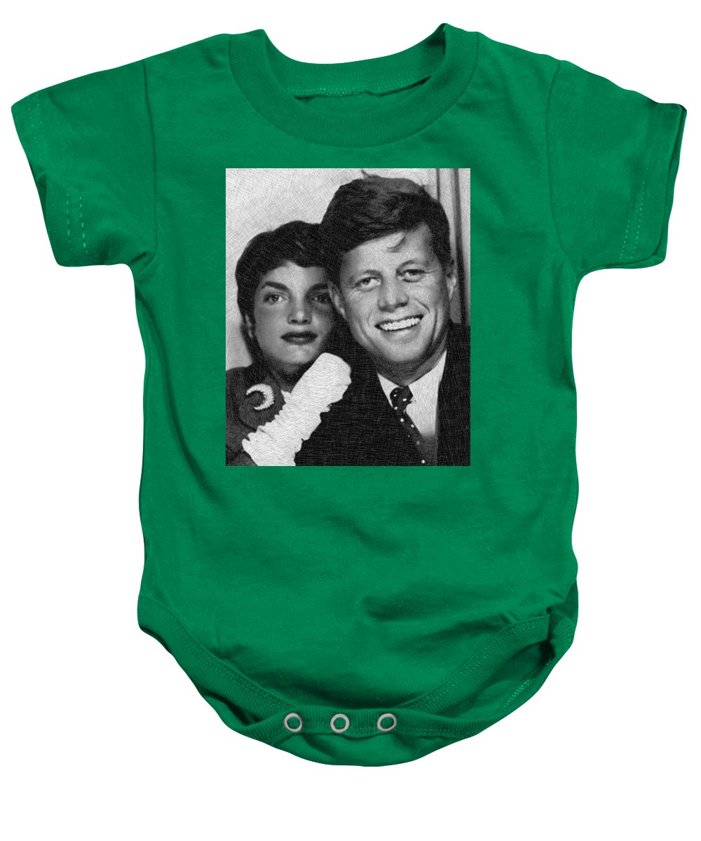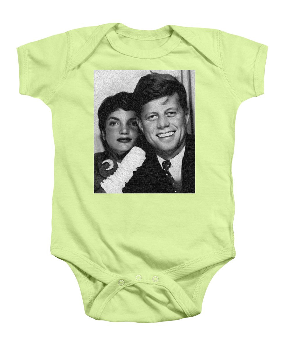 • John F Kennedy And Jackie - Baby Onesie Baby Onesie Pixels Kelly Green Small