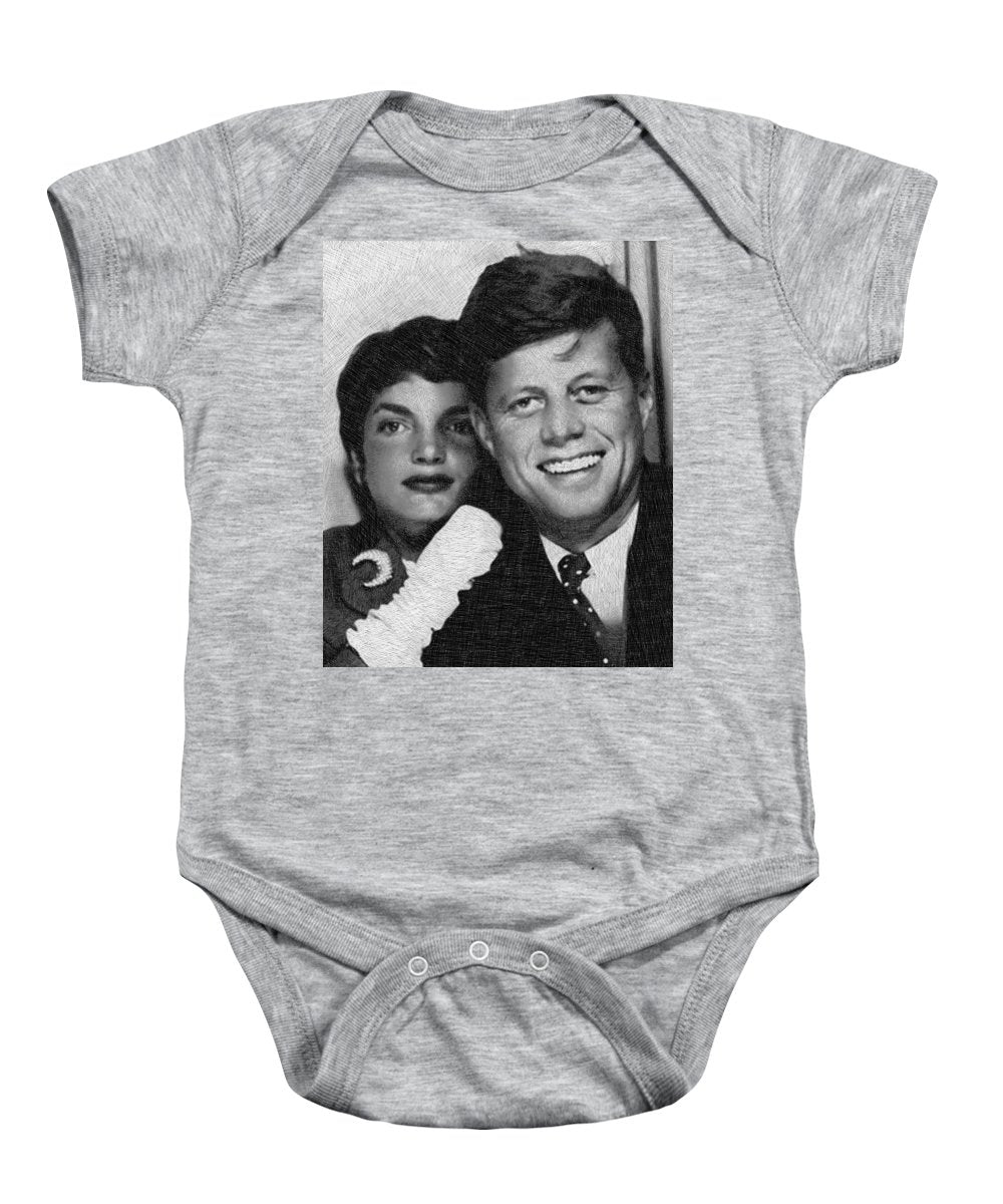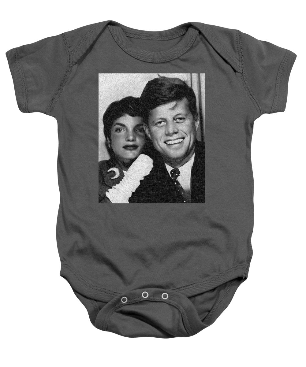 • John F Kennedy And Jackie - Baby Onesie Baby Onesie Pixels Charcoal Small