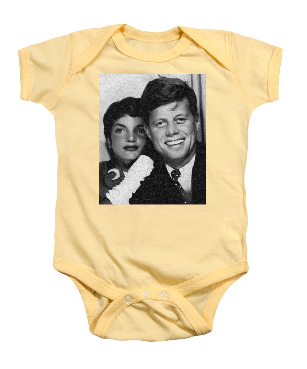 • John F Kennedy And Jackie - Baby Onesie Baby Onesie Pixels Gold Small