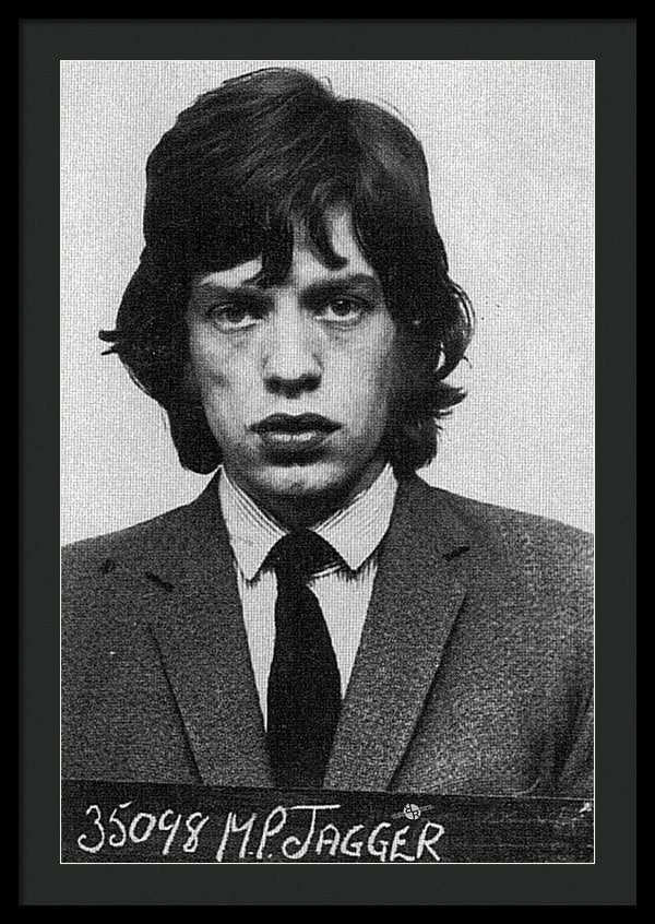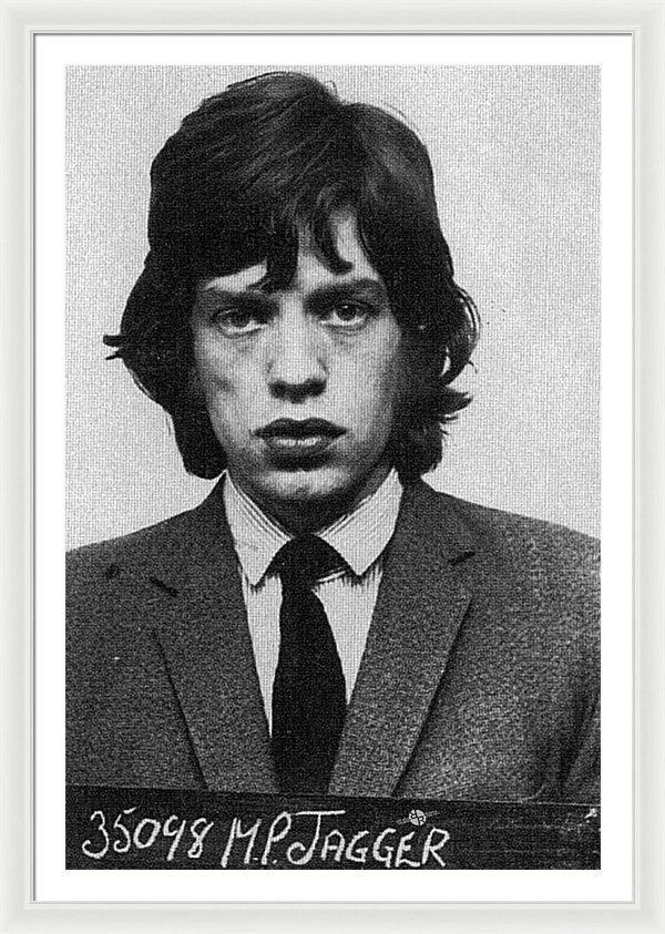 • Mick Jagger Mug Shot Vertical - Framed Print