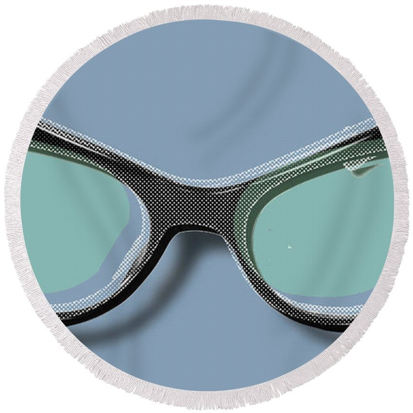 Retro Glasses Funky Pop Blue Teal - Round Beach Towel