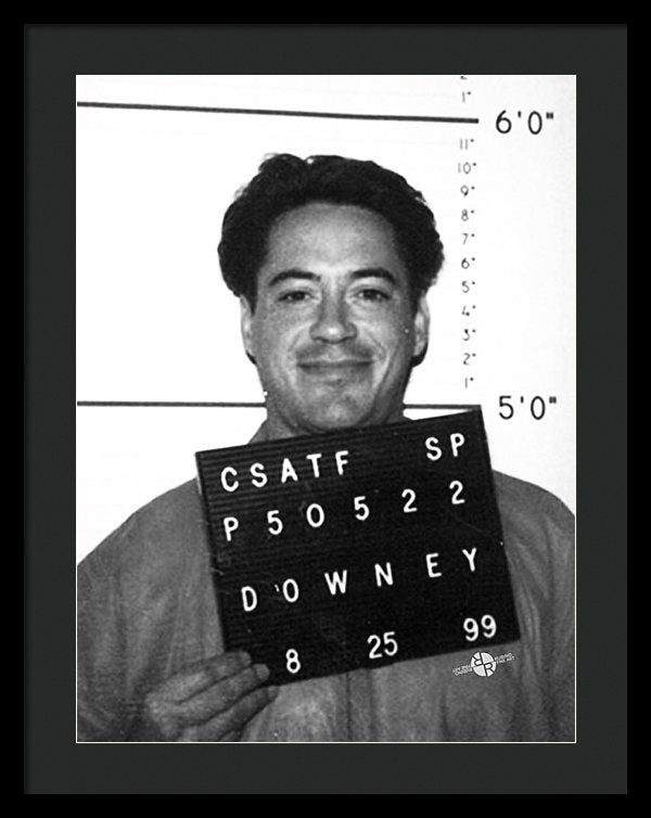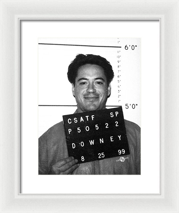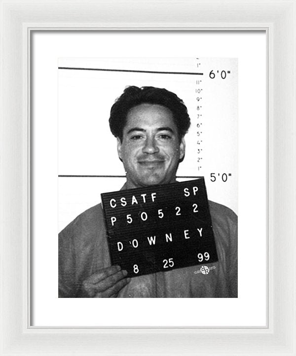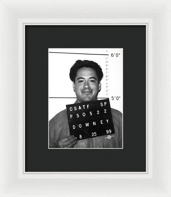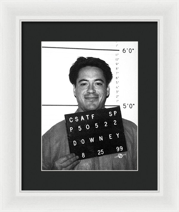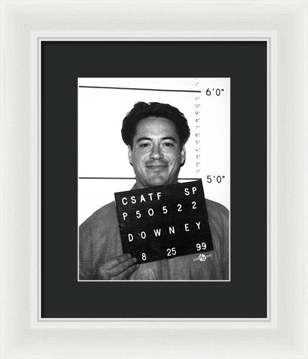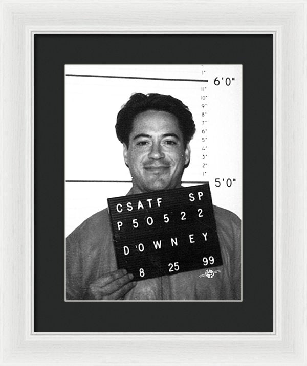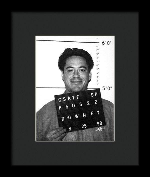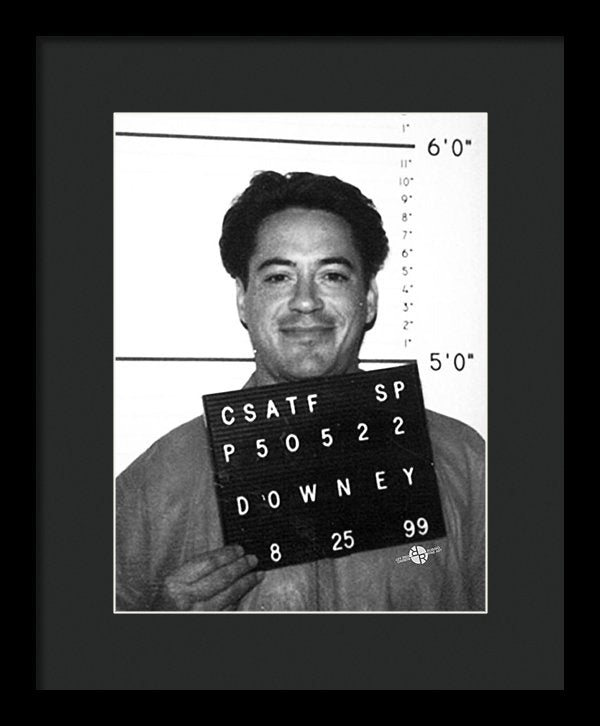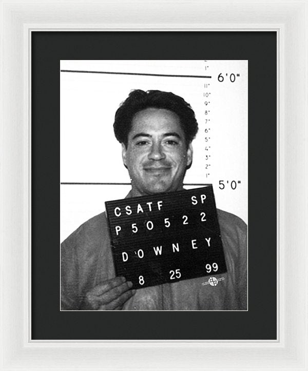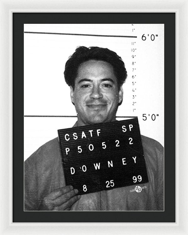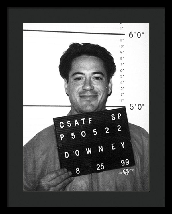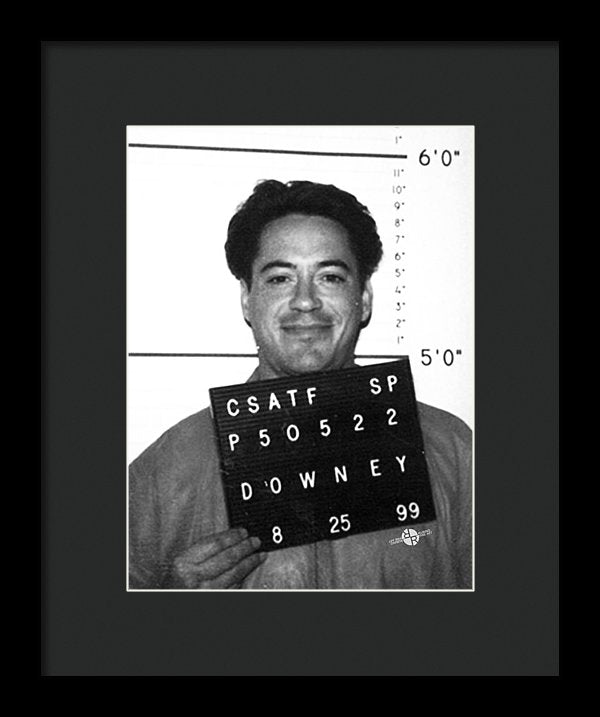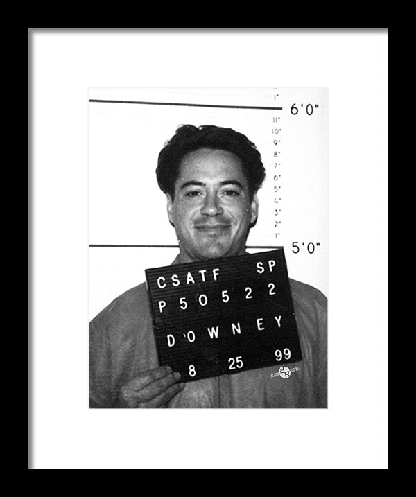 • Robert Downey Jr Mug Shot 1999 Black And White - Framed Print
