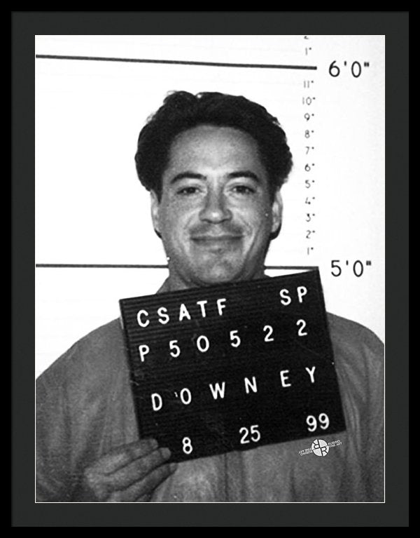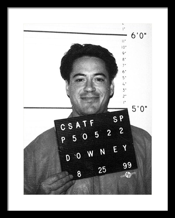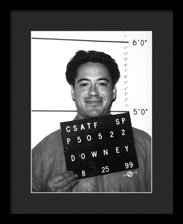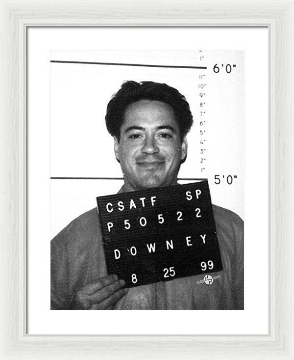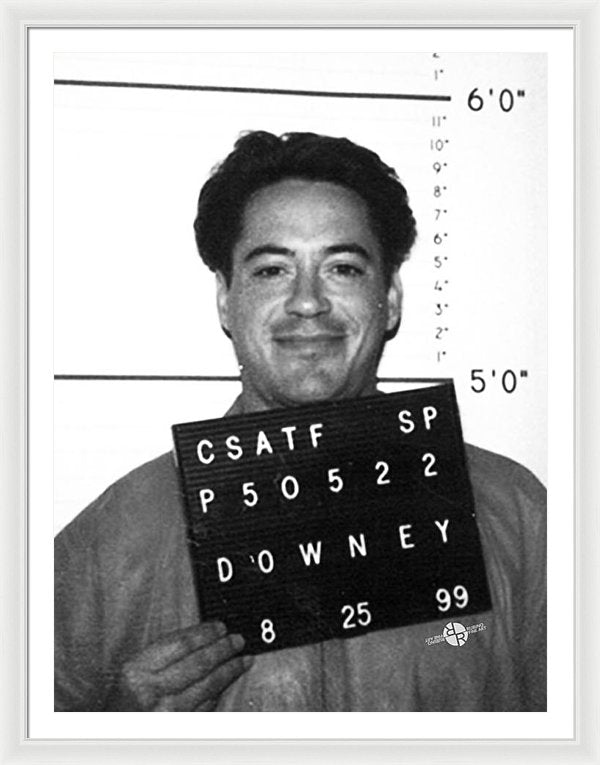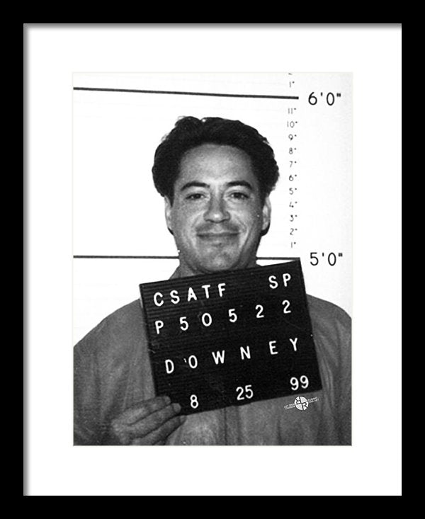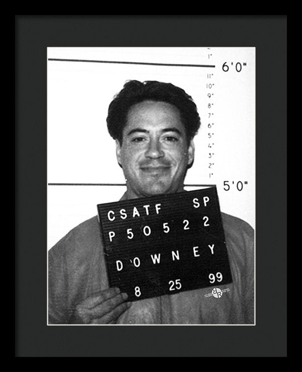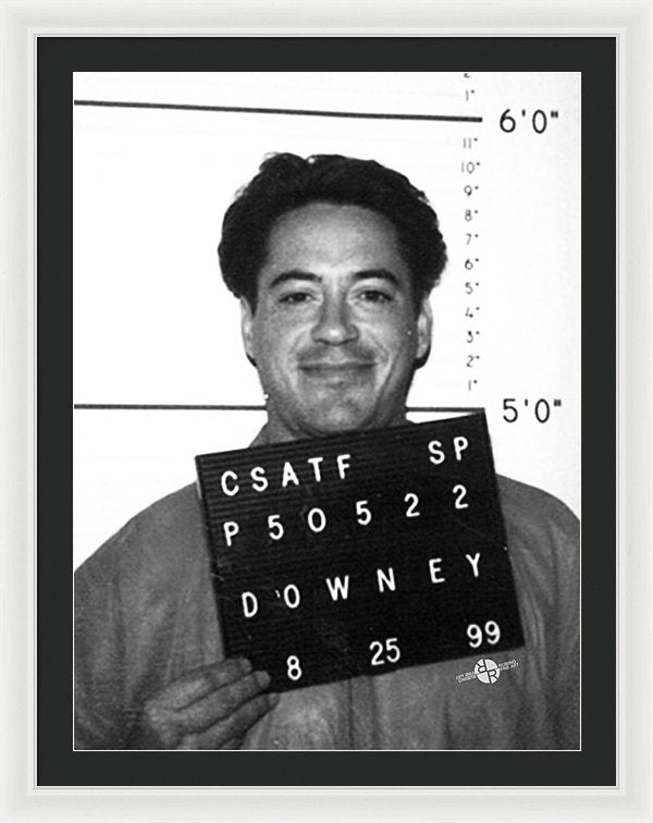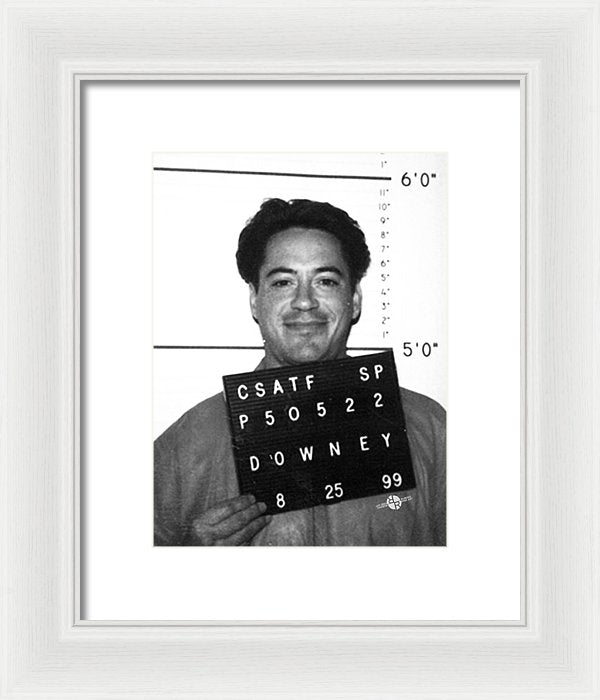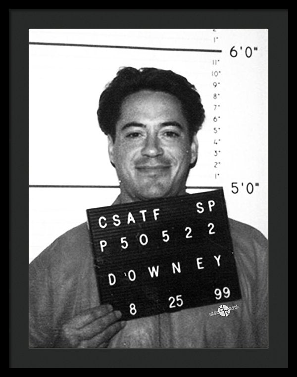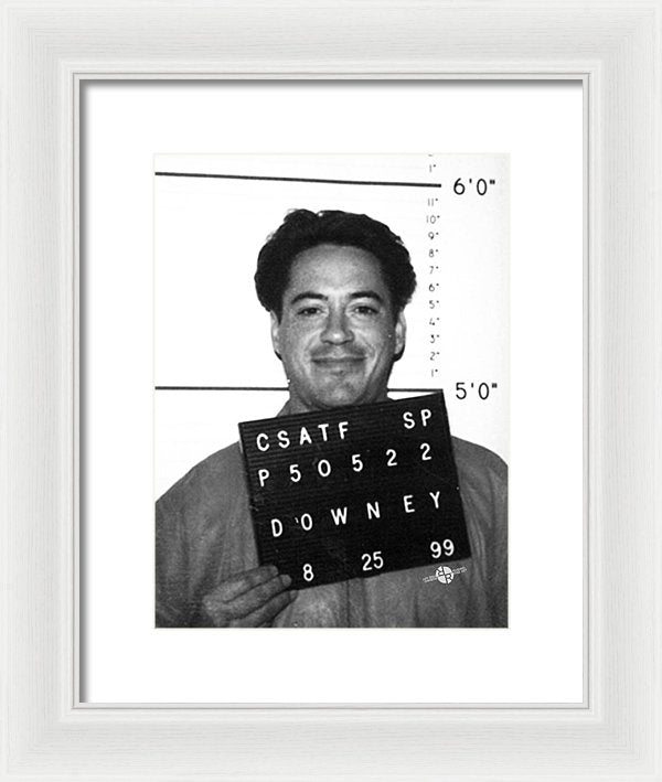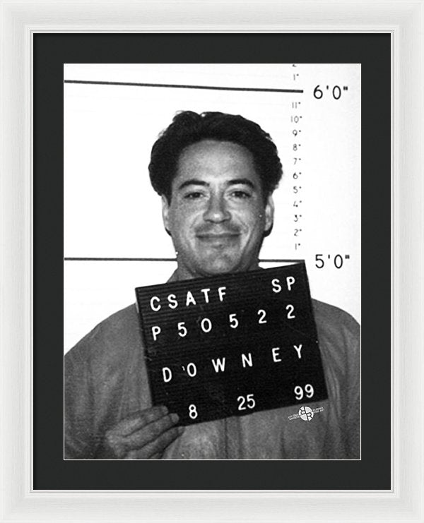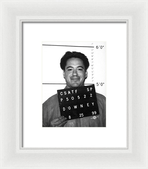 • Robert Downey Jr Mug Shot 1999 Black And White - Framed Print