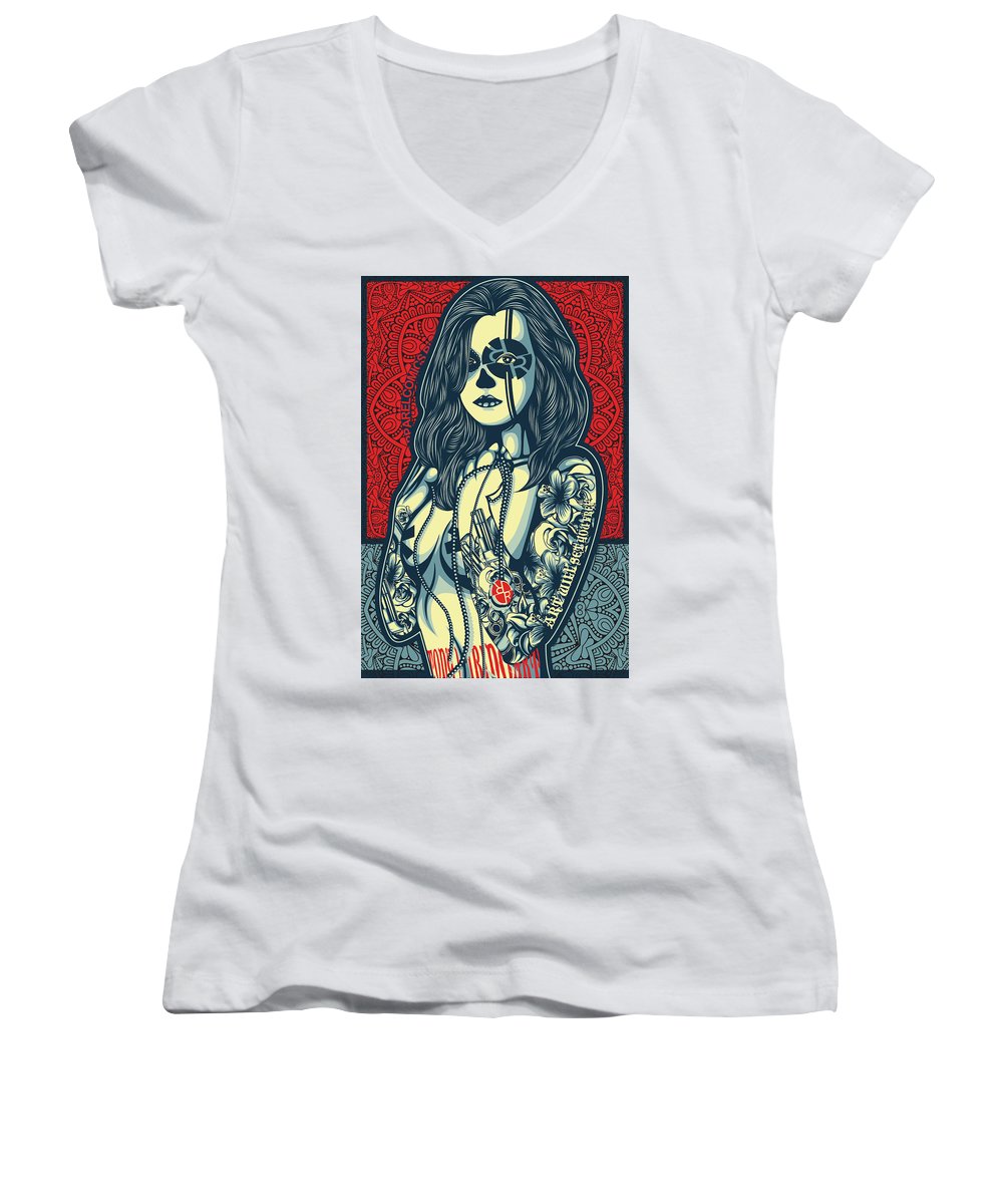 • Rubino Cat Woman - Women's V-Neck (Athletic Fit) Women's V-Neck (Athletic Fit) Pixels White Small