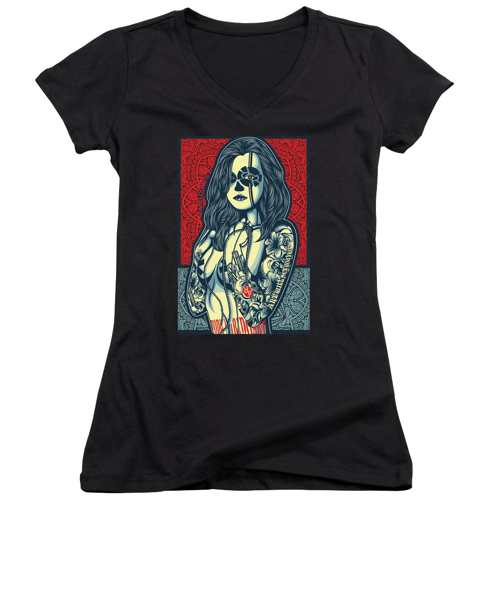 • Rubino Cat Woman - Women's V-Neck (Athletic Fit) Women's V-Neck (Athletic Fit) Pixels Black Small