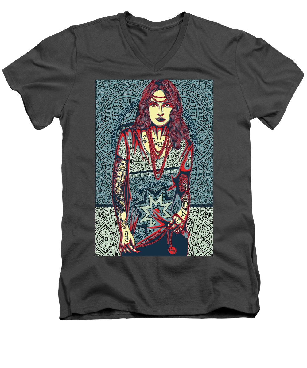 Rubino Red Lady - Men's V-Neck T-Shirt Men's V-Neck T-Shirt Pixels Charcoal Small