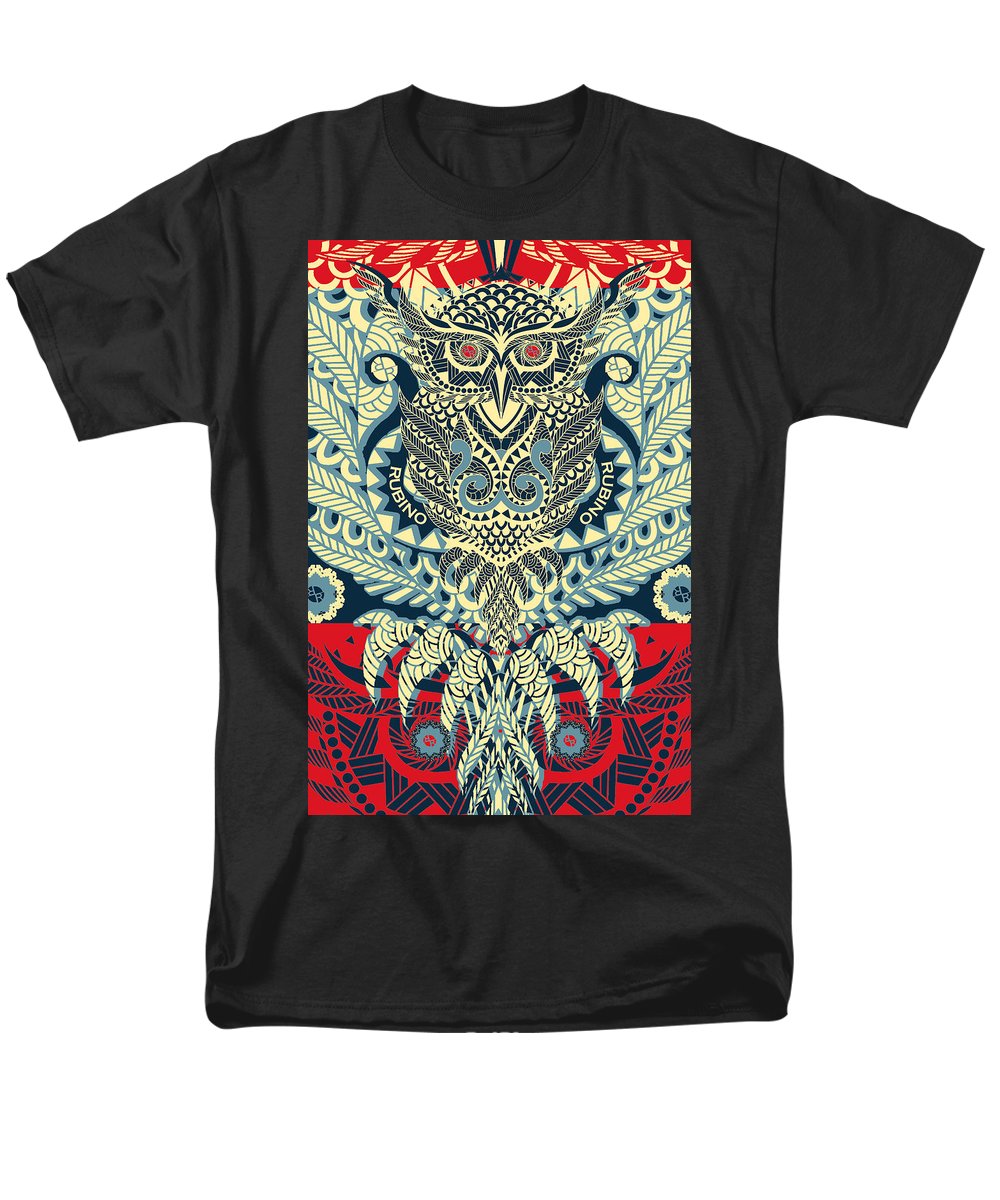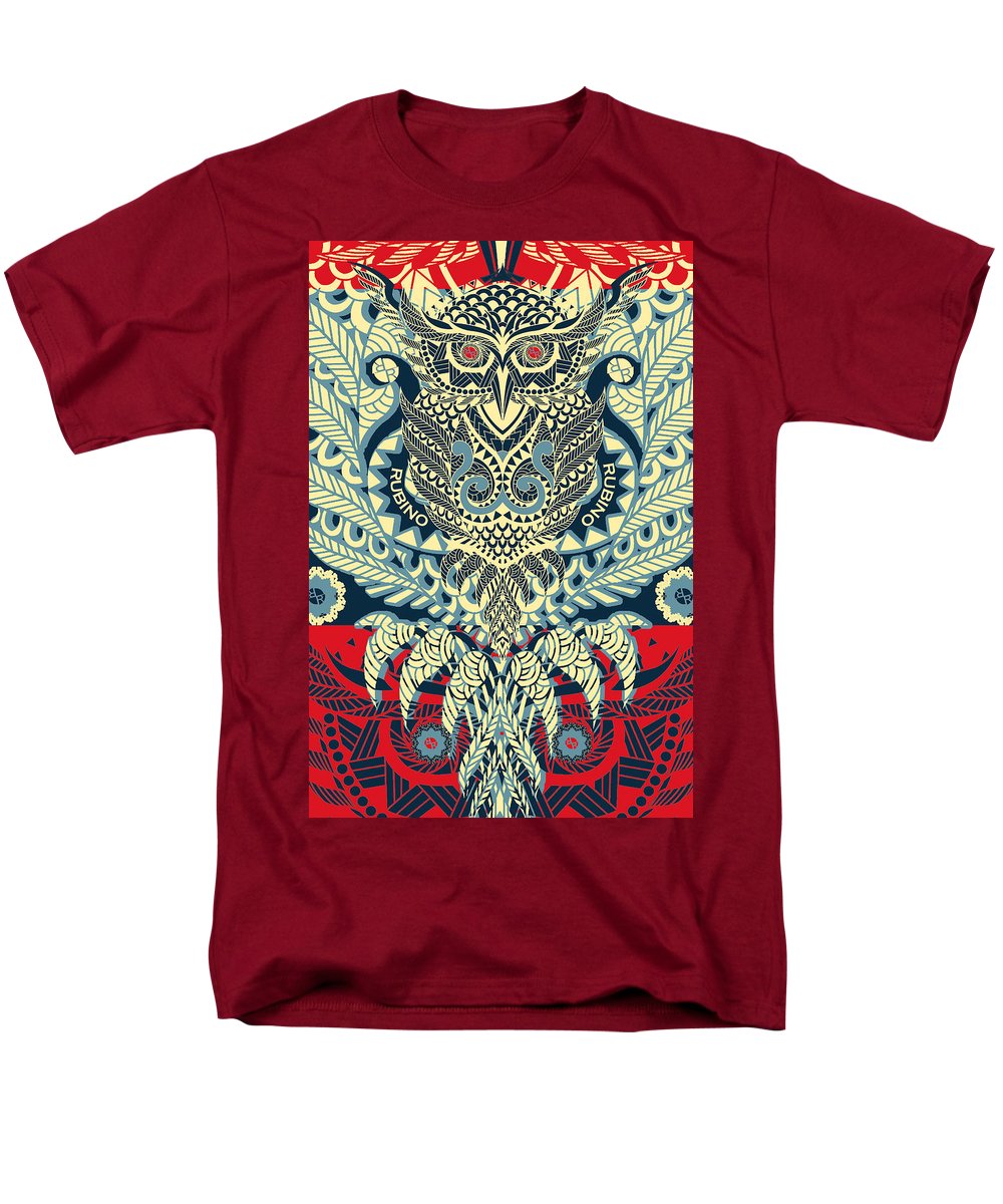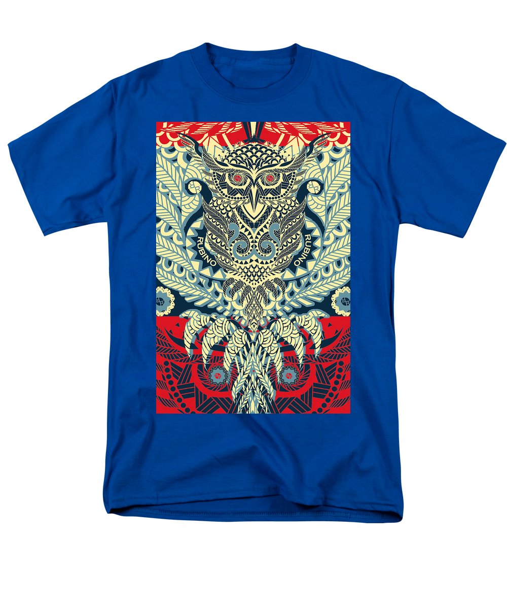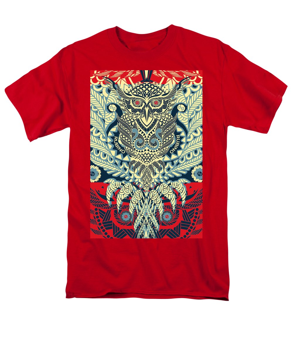 • Rubino Zen Owl Blue - Men's T-Shirt  (Regular Fit) Men's T-Shirt (Regular Fit) Pixels Red Small