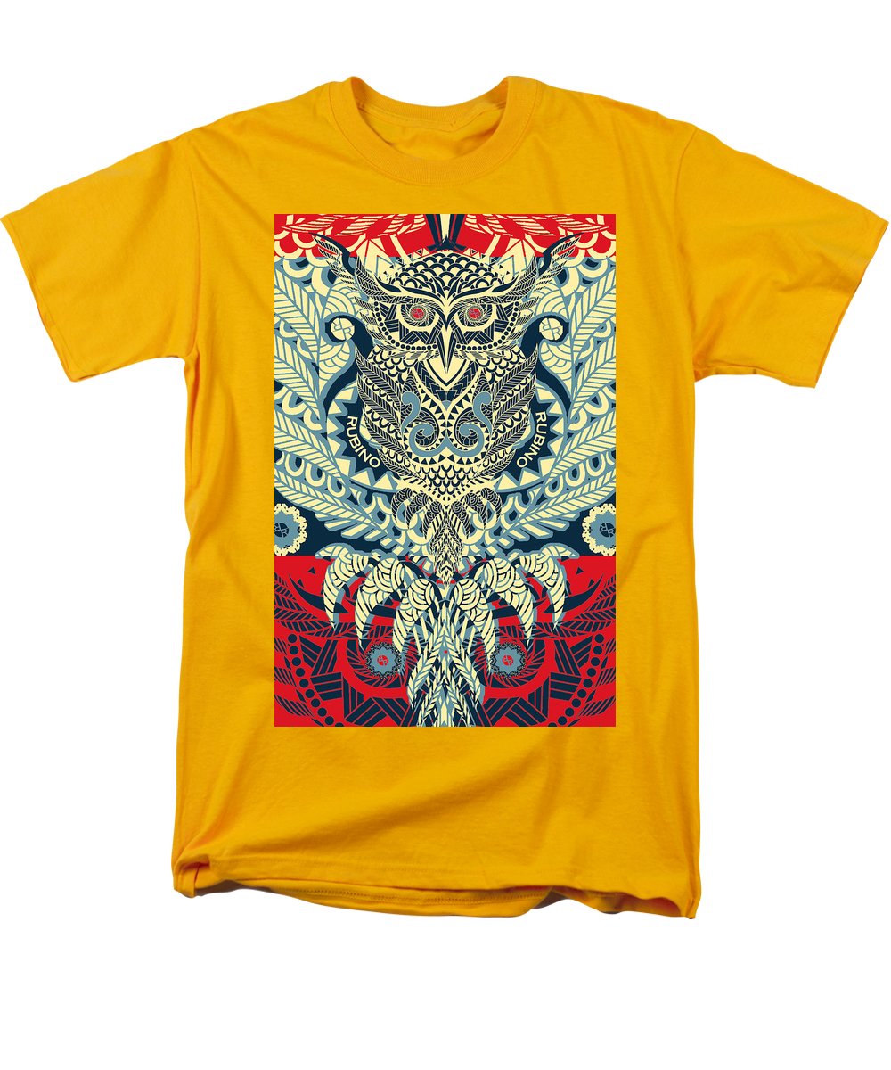 • Rubino Zen Owl Blue - Men's T-Shirt  (Regular Fit) Men's T-Shirt (Regular Fit) Pixels Gold Small