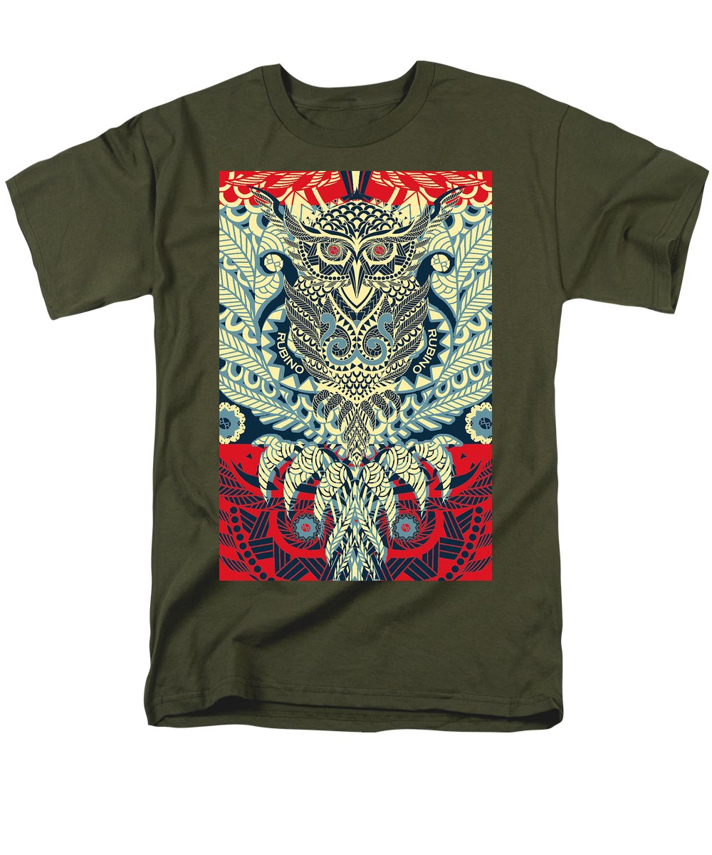 • Rubino Zen Owl Blue - Men's T-Shirt  (Regular Fit) Men's T-Shirt (Regular Fit) Pixels Military Green Small