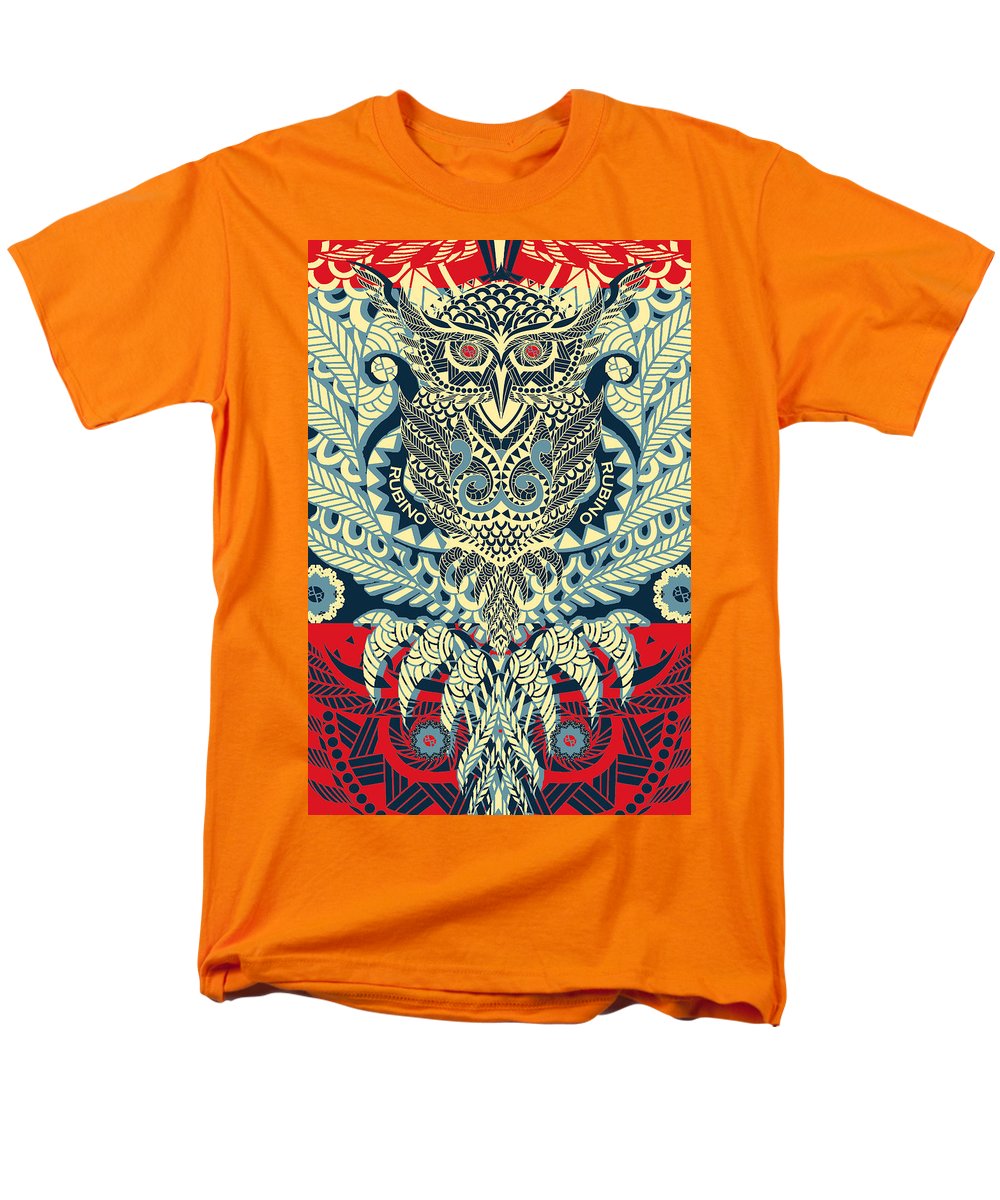 • Rubino Zen Owl Blue - Men's T-Shirt  (Regular Fit) Men's T-Shirt (Regular Fit) Pixels Orange Small