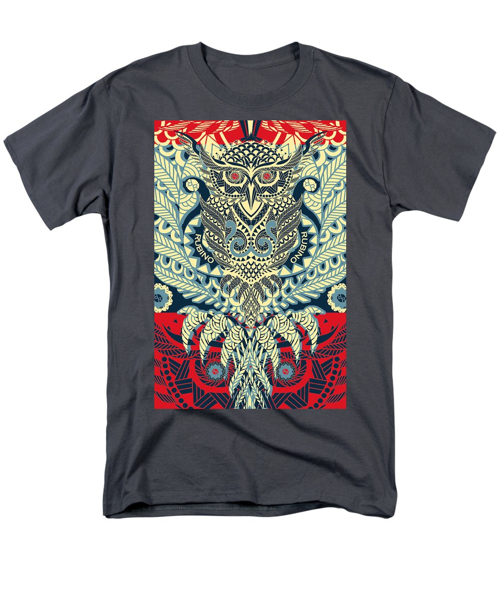 • Rubino Zen Owl Blue - Men's T-Shirt  (Regular Fit) Men's T-Shirt (Regular Fit) Pixels Charcoal Small