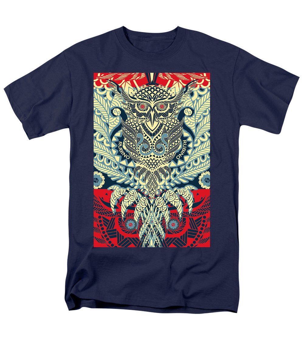 • Rubino Zen Owl Blue - Men's T-Shirt  (Regular Fit) Men's T-Shirt (Regular Fit) Pixels Navy Small