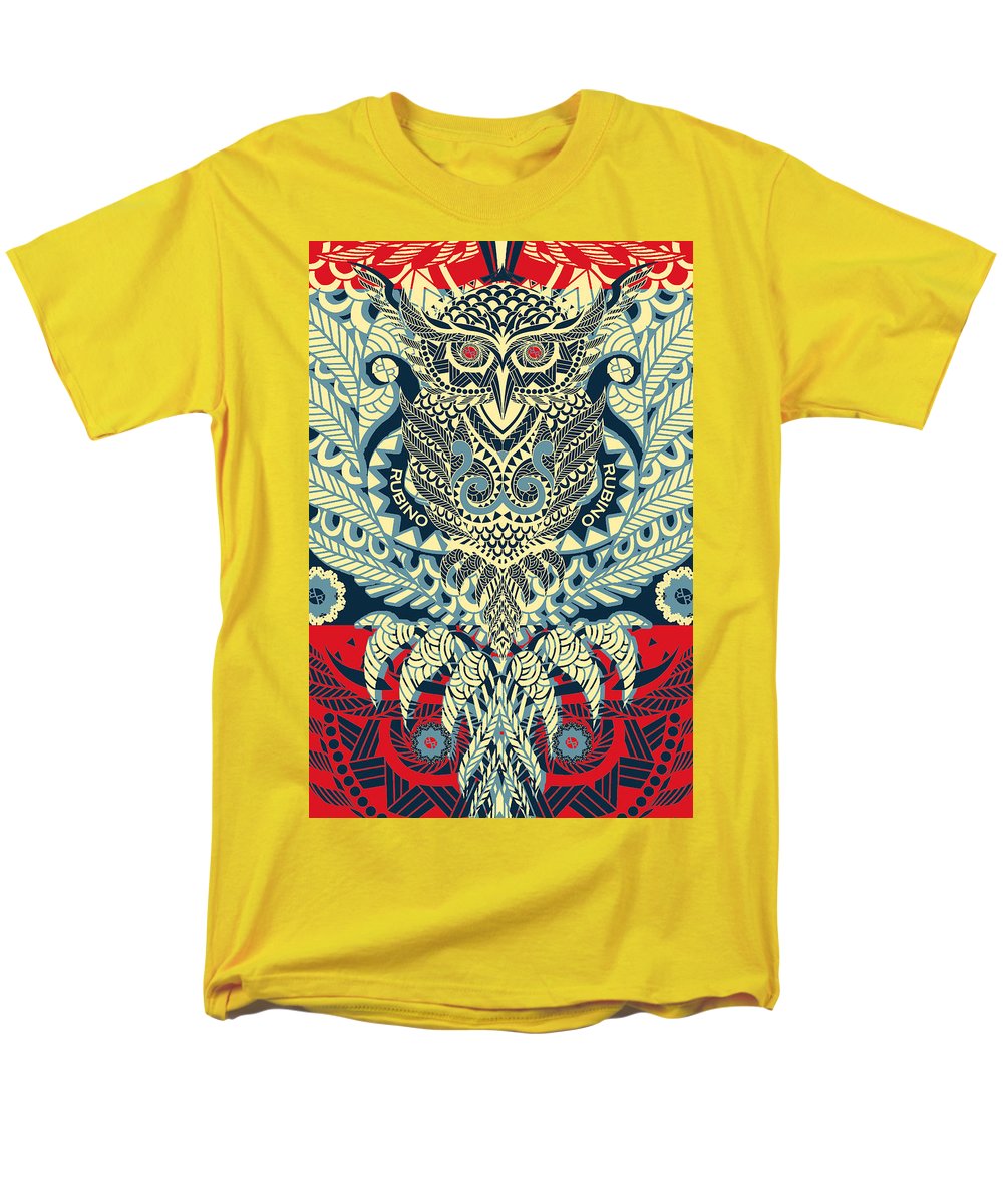• Rubino Zen Owl Blue - Men's T-Shirt  (Regular Fit) Men's T-Shirt (Regular Fit) Pixels Yellow Small