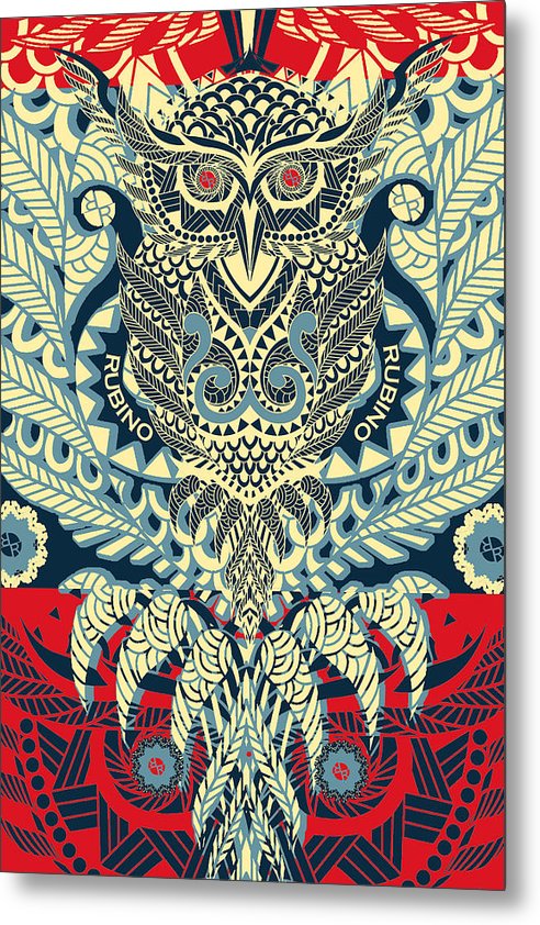 Rubino Zen Owl Blue metal print by Tony Rubino. Bring your artwork to life with the stylish lines and added depth of a metal print. Your image gets printed directly onto a sheet of 1/16" thick aluminum. The aluminum sheet is offset from the wall by a 3/4" thick wooden frame which is attached to the back. The high gloss of the aluminum sheet complements the rich colors of any image to produce stunning results.