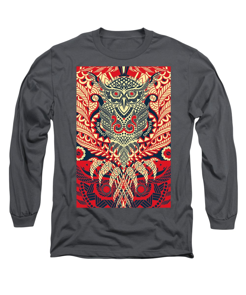 • Rubino Zen Owl Red - Long Sleeve T-Shirt Long Sleeve T-Shirt Pixels Charcoal Small