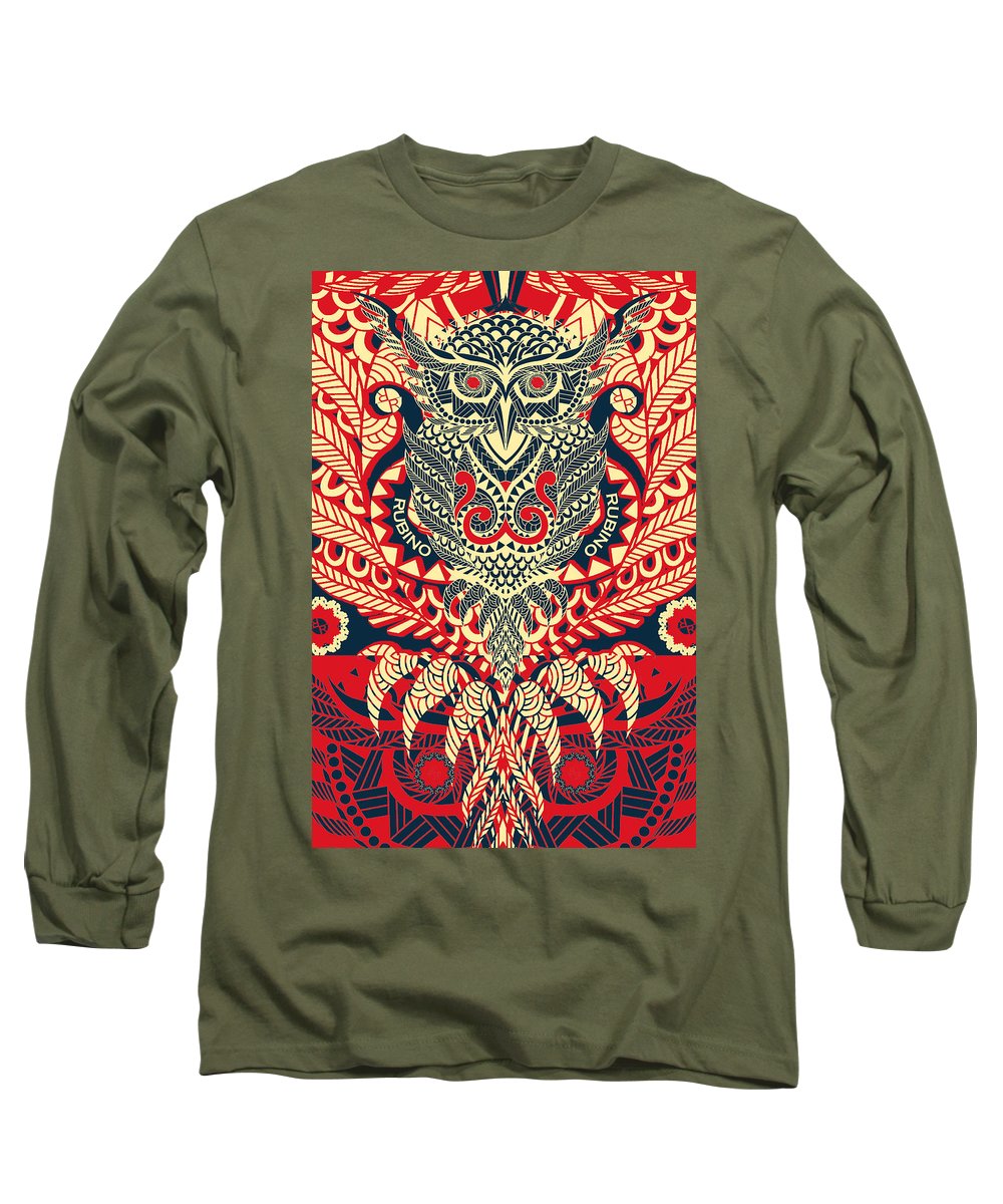 • Rubino Zen Owl Red - Long Sleeve T-Shirt Long Sleeve T-Shirt Pixels Military Green Small
