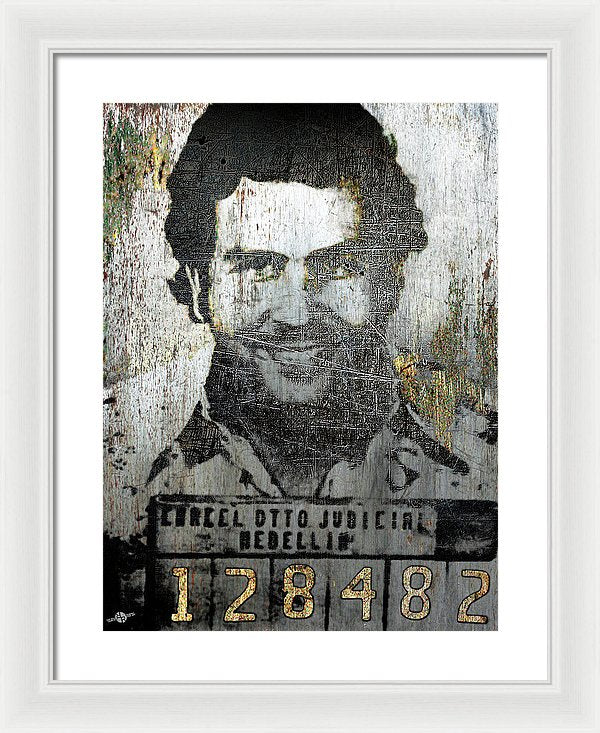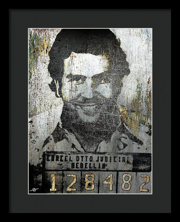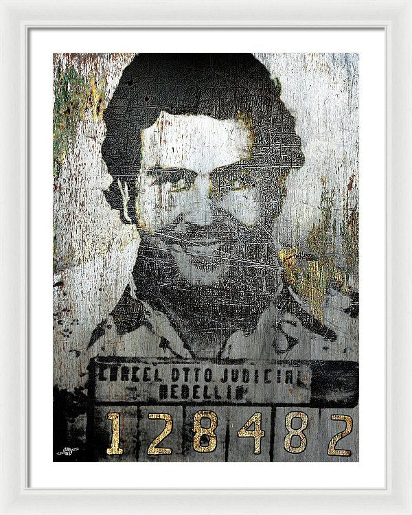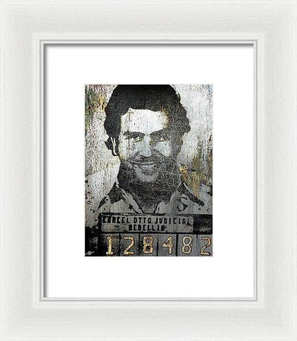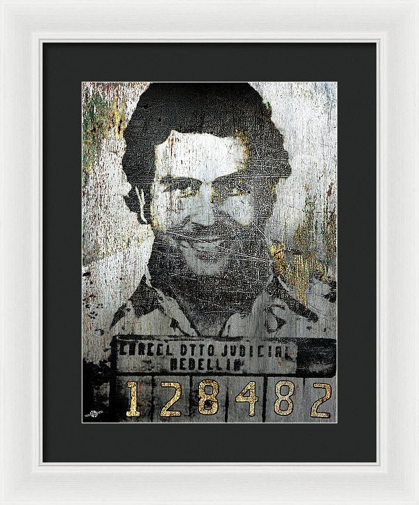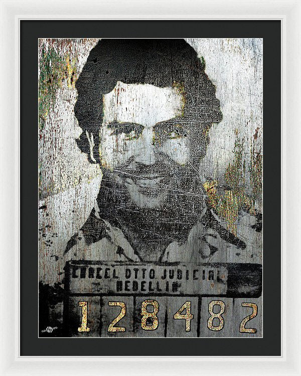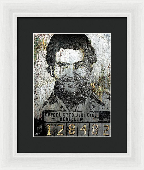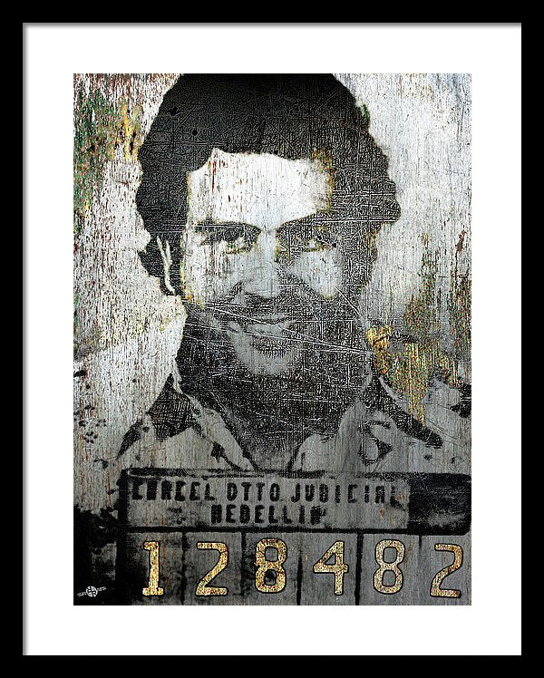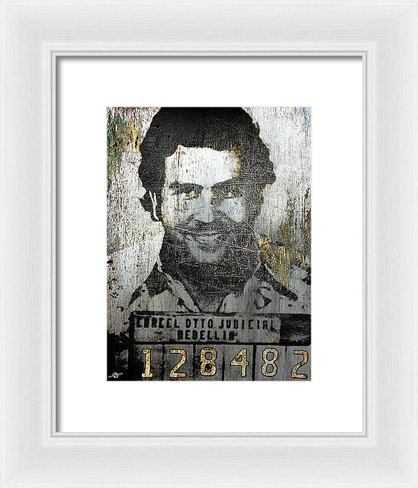 • Silver Pablo Escobar Mug Shot 1991 - Framed Print