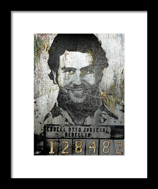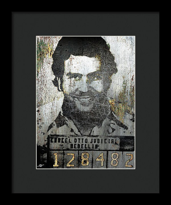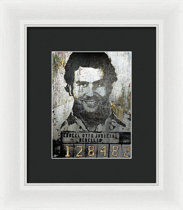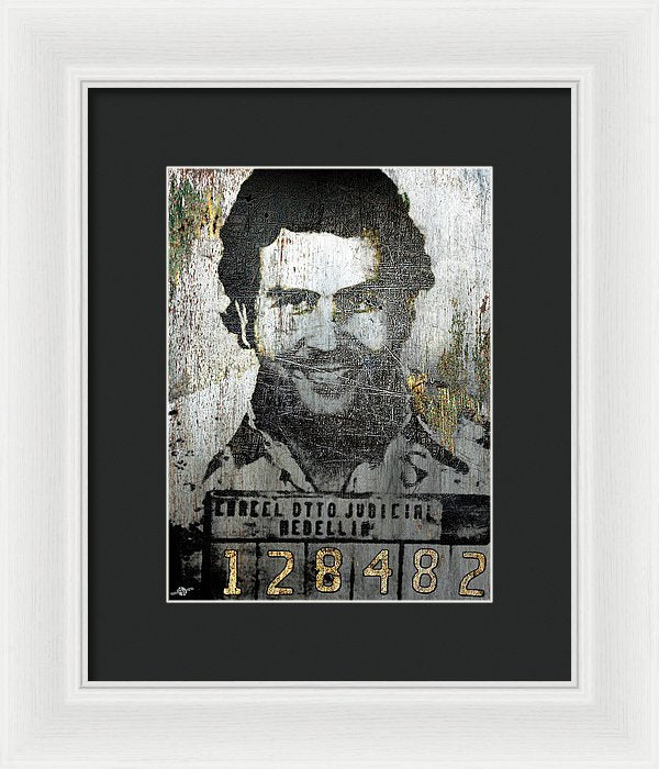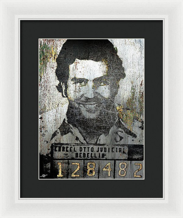 Silver Pablo Escobar Mug Shot 1991 - Framed Print