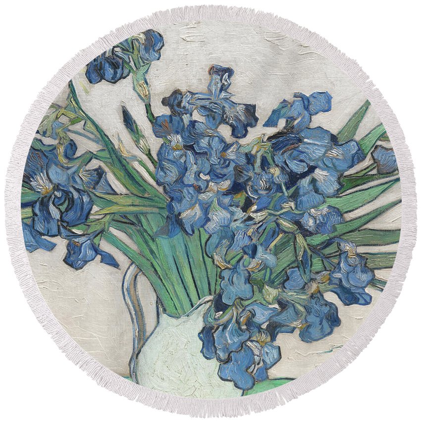 Vincent Van Gogh Irises Floral Purple - Round Beach Towel Round Beach Towel Pixels 60