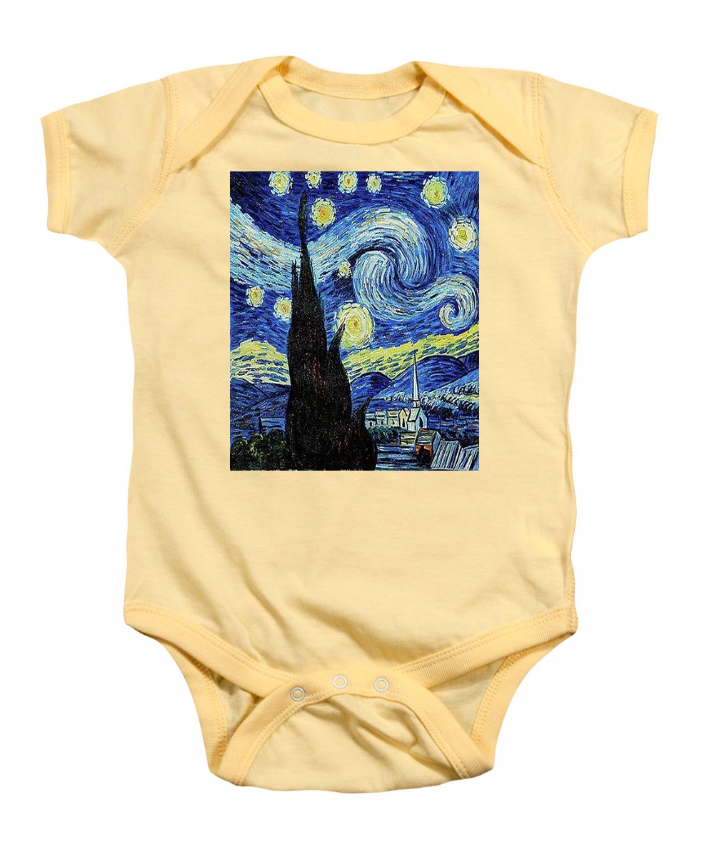 • Vincent Van Gogh Starry Night Painting - Baby Onesie Baby Onesie Pixels Soft Yellow Small