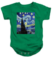 • Vincent Van Gogh Starry Night Painting - Baby Onesie Baby Onesie Pixels Kelly Green Small