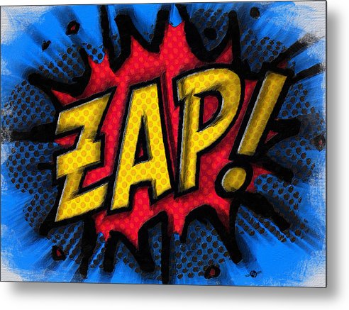 Zap metal print by Tony Rubino. Bring your artwork to life with the stylish lines and added depth of a metal print. Your image gets printed directly onto a sheet of 1/16" thick aluminum. The aluminum sheet is offset from the wall by a 3/4" thick wooden frame which is attached to the back. The high gloss of the aluminum sheet complements the rich colors of any image to produce stunning results.
